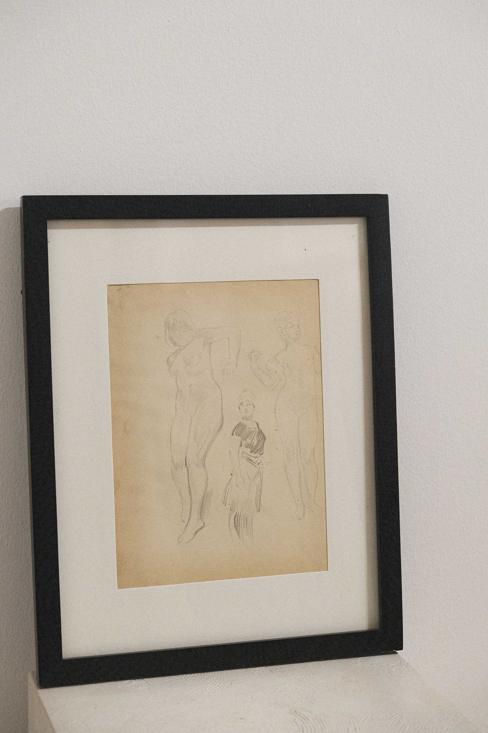 Vintage artist sketch renderings framed in a modern black metal frame.